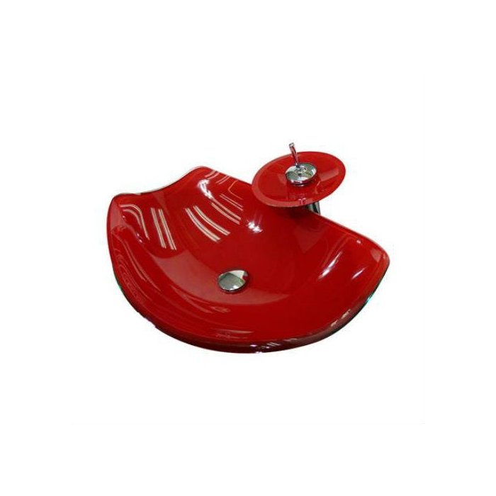 Dimensão :49,7 x 32 x 13,5cm ,cor : vermelha , espessura : 12mm ,material , vidro temperado ,Cuba de vidro canoa oval vermelha