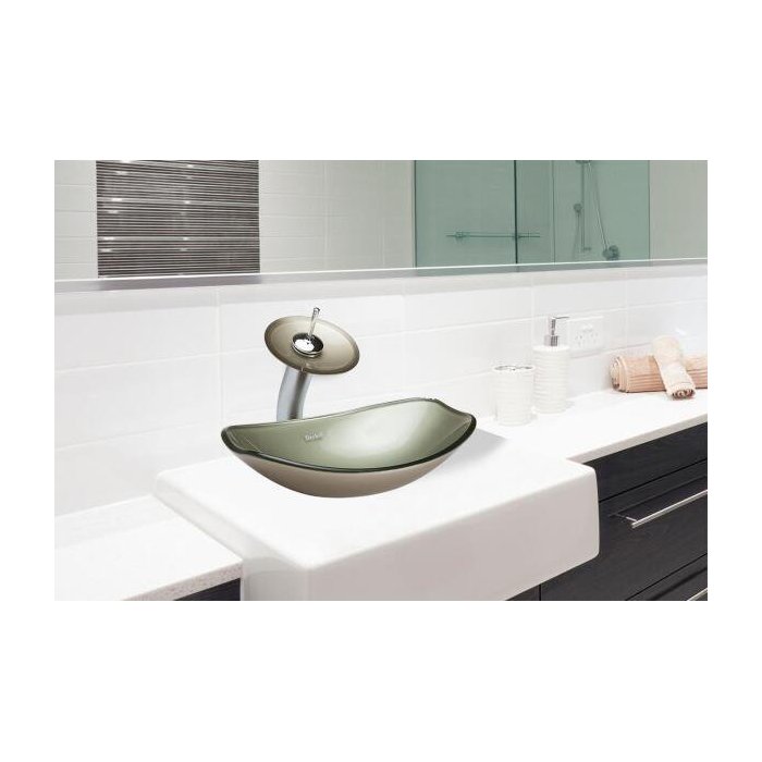 Cuba de vidro chanfrada bege ,válvula ,sifao,torn cascata