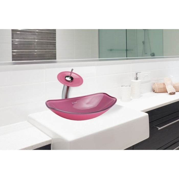 cuba de vidro chanfrada Rosa,valvula