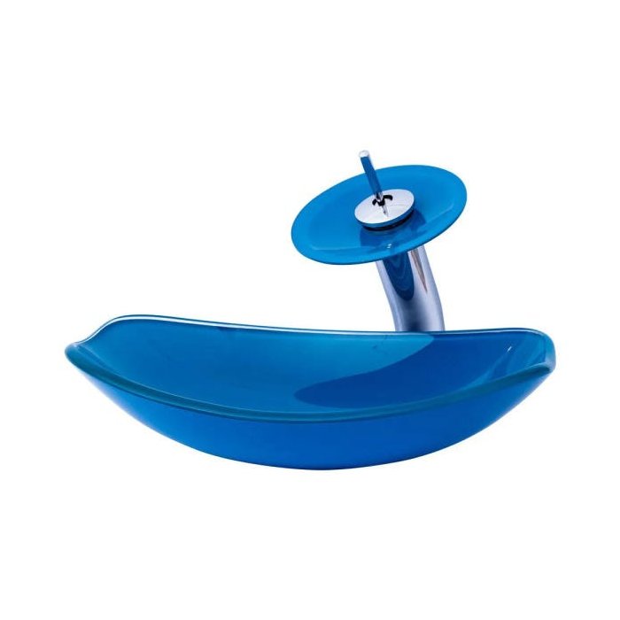 Cuba de Vidro Chanfrada + Torneira Cascata + Válvula + Sifão - Água Água