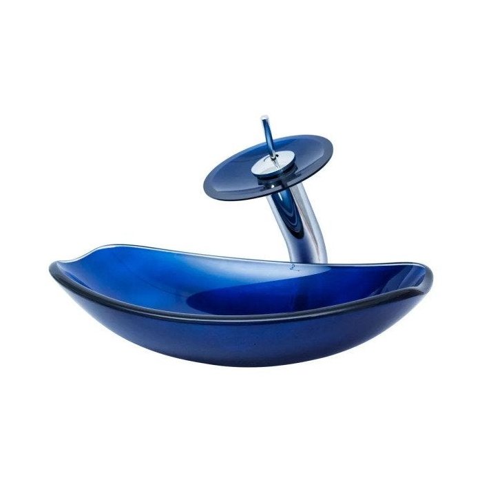 Cuba de Vidro Chanfrada + Torneira Cascata + Válvula + Sifão - Azul Escuro