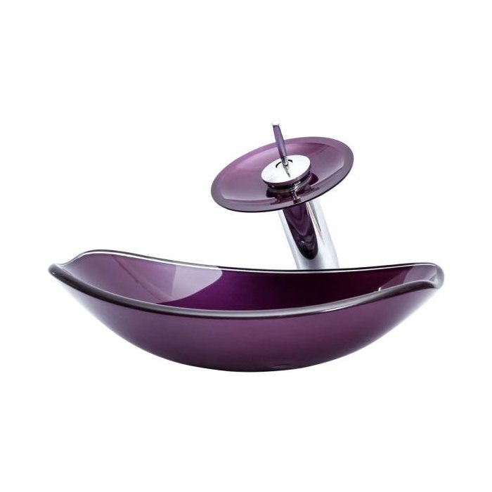 Cuba de Vidro Chanfrada + Torneira Cascata + Válvula + Sifão - Púrpura Púrpura