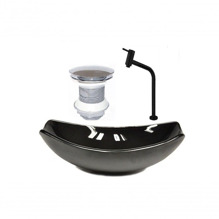 Cuba de Vidro Oval 46cm Preta + Valvula + Torneira Preta
