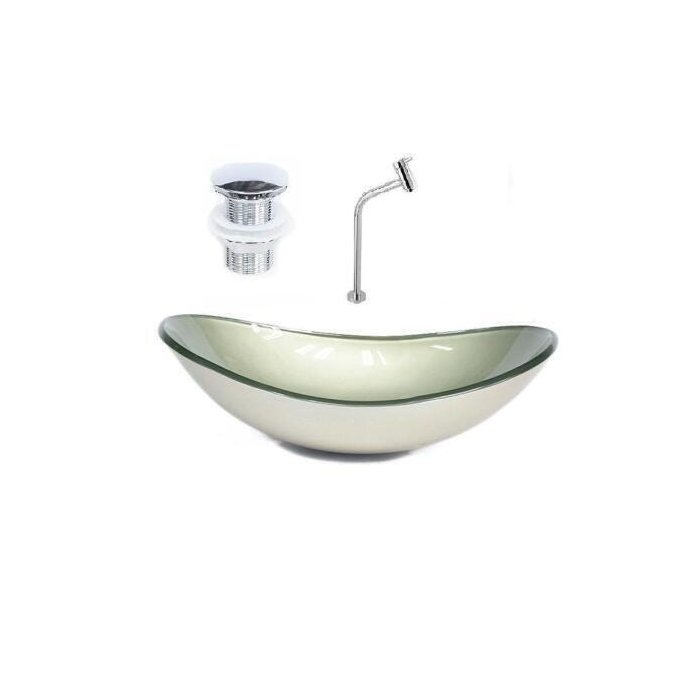 Cuba De Vidro Oval 47Cm Champanhe + Válvula + Torneira