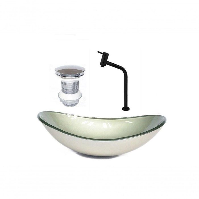 Cuba De Vidro Oval 47cm Champanhe + Valvula + Torneira Preta As nossas cubas de vidro são ideais para projetos de decoração em banheiros com alto padrão e bom gosto, pois proporcionam um efeito moderno e único ao ambiente, são instaladas sobre a bancada e por isso realçam com destaque o acabamento do seu banheiro, sem contar a eficiência e praticidade que se leva para a sua casa.