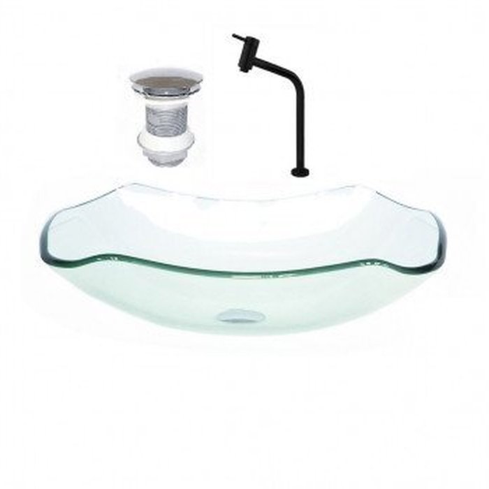 Cuba de Vidro Oval 47cm com Válvula e Torneira