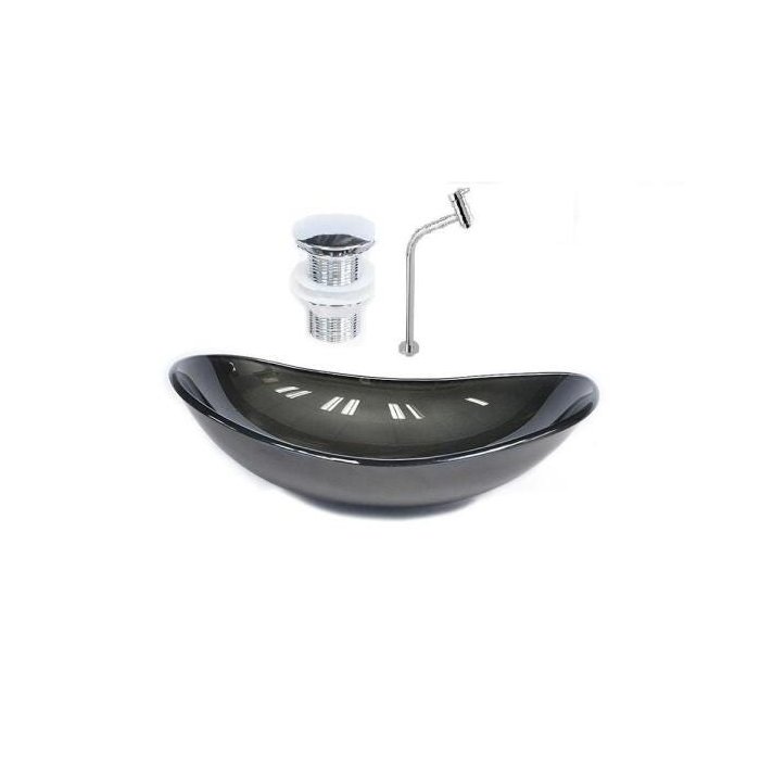 Cuba De Vidro Oval 47Cm Grafite + Válvula + Torneira