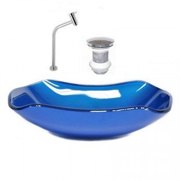 Cuba de Vidro Oval 47cm Jateada com Válvula e Torneira Azul Escuro