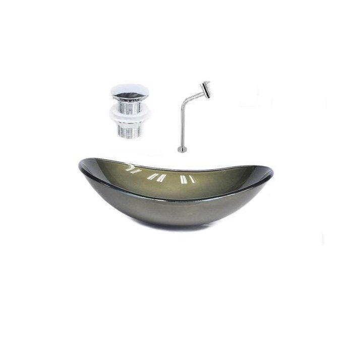 Cuba de vidro oval 47cm ouro envelhecido + válvula click + torneira de metal