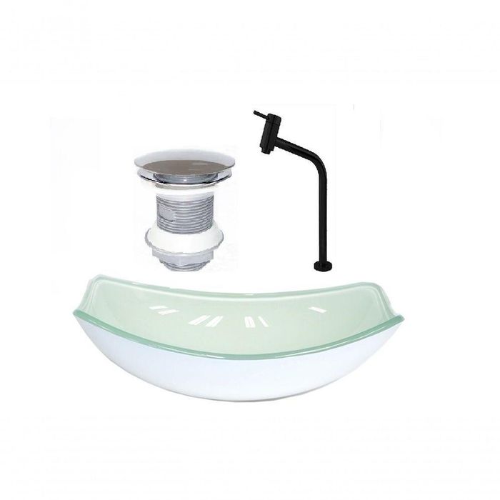 * Imagens ilustrativas. CUBA DE VIDRO OVAL CC51 + VÁLVULA POLIPROPILENO + TORNEIRA METAL PRETA