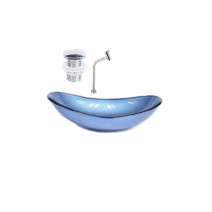 Cuba De Vidro Oval 55Cm Azul Valvula Click Torneira Metal