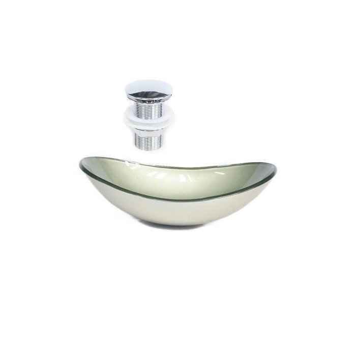 Cuba De Vidro Oval 55Cm Champanhe + Valvula Click