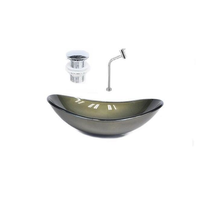 Cuba De Vidro Oval 55Cm Ouro Valvula Torneira Metal