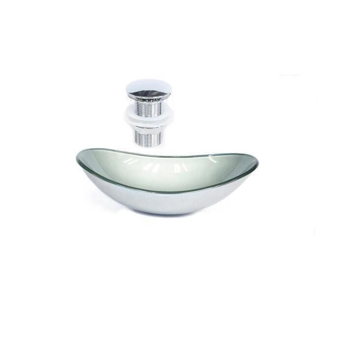 Cuba De Vidro Oval 55Cm Prata + Valvula Click