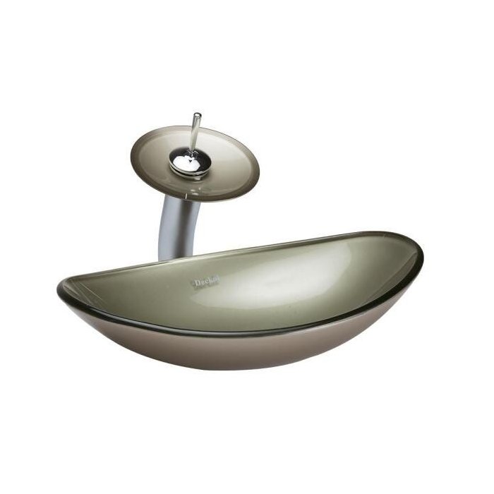 Cuba de vidro oval bege ,válvula ,sifao, cascata