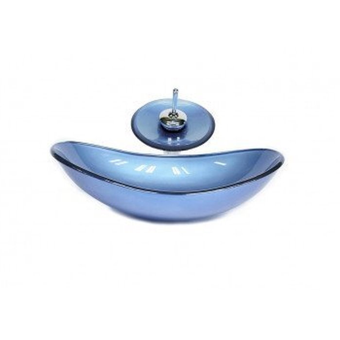 Cuba de Vidro Oval Chanfrada 46cm Azul
