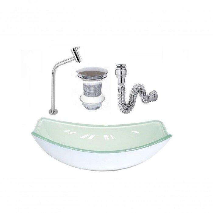 Cuba de Vidro Oval Chanfrada 46cm Branca + Valvula + Torneira + Sifao Branca