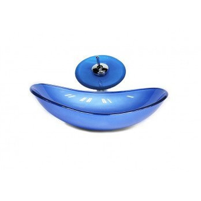 Cuba de Vidro Oval Chanfrada 46cm com Válvula Click Azul