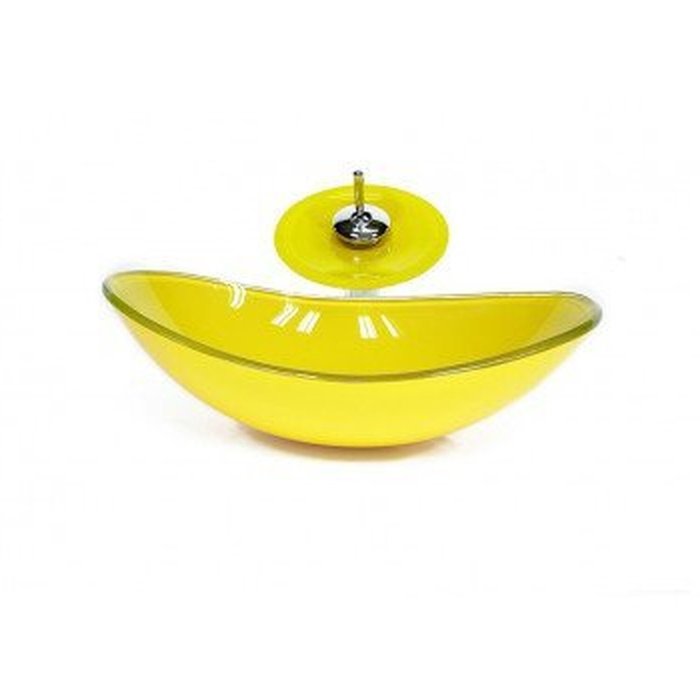 Cuba de Vidro Oval Chanfrada 46cm com Válvula Clicke Torneira Metal Amarelo