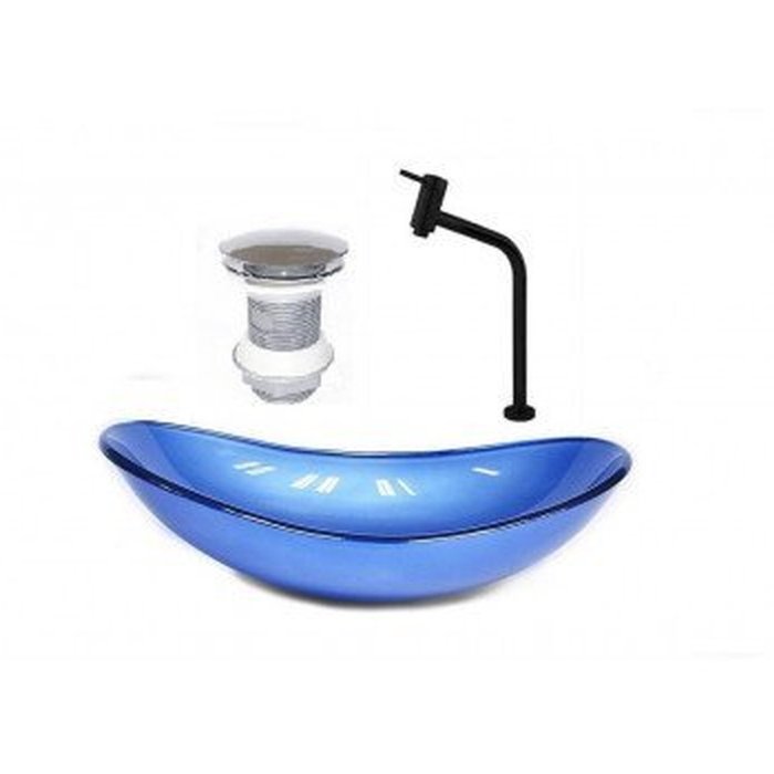 Cuba de Vidro Oval Chanfrada 46cm com Válvula Clicke Torneira Metal Azul