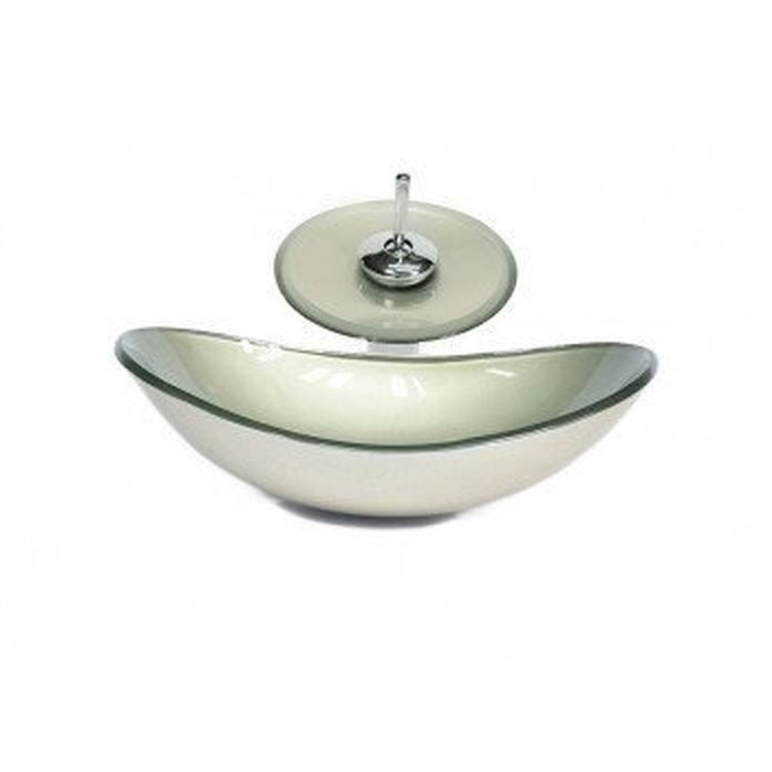 Cuba de Vidro Oval Chanfrada 46cm com Válvula e Torneira Metal Champanhe