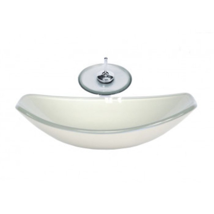 Cuba de Vidro Oval Chanfrada 46cm com Válvula Torneira Casacata