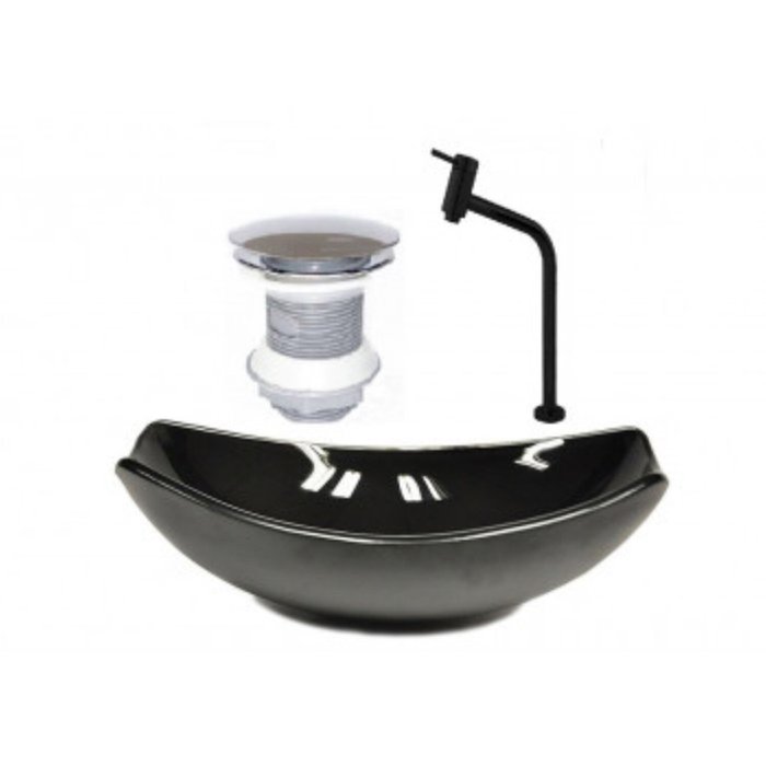 Cuba de Vidro Oval Chanfrada 46cm com Válvula Torneira Metal Preto