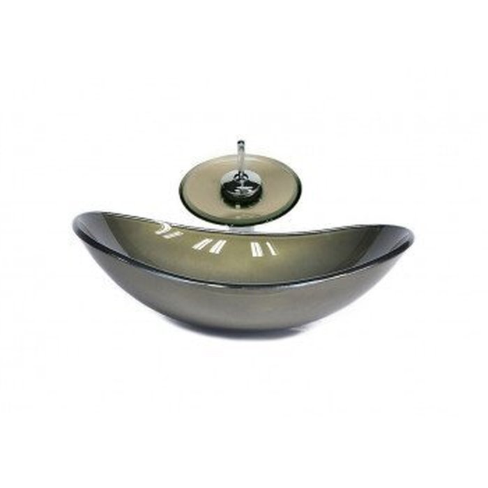 Cuba de Vidro Oval Chanfrada 46cm Dourado Real com Válvula Click