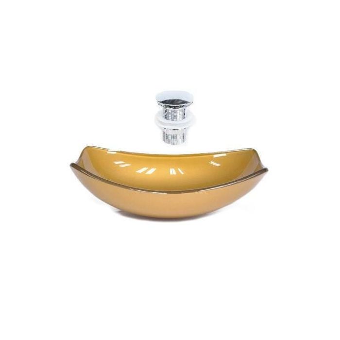 Cuba de vidro oval chanfrada 46cm dourado real + valvula click