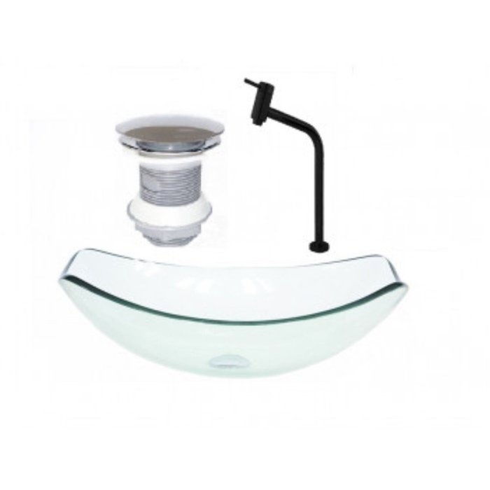 Cuba de Vidro Oval Chanfrada 46cm Jateado com Válvula Torneira Metal