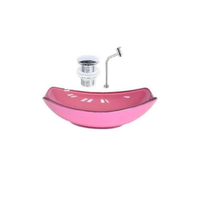 Cuba de vidro oval chanfrada 46cm rosa + valvula + torneira