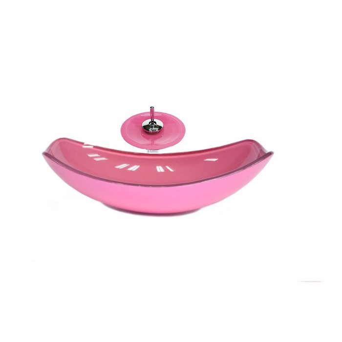 CUBA DE VIDRO OVAL CHANFRADA 46CM ROSA + VALVULA + TORNEIRA CASCATA Rosa