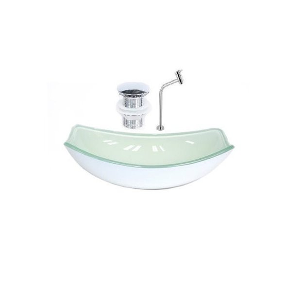 Cuba de Vidro Oval Chanfrada 46cm + Valvula Click + Torneira Metal Branco