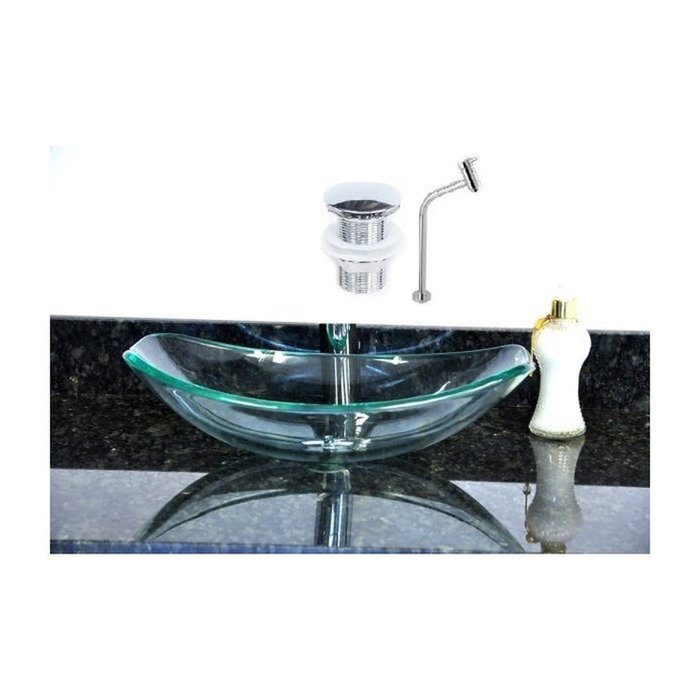 Cuba de Vidro Oval Chanfrada 46cm + Valvula Click + Torneira Metal