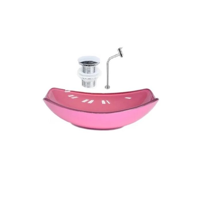 | Itens Inclusos | 1 cuba de vidro oval chanfrada 46cm rosa + valvula click + torneira metal |