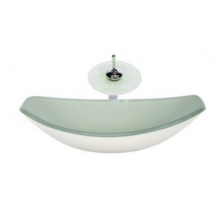 Cuba de Vidro Oval Chanfrada 51cm com Válvula Clicke Torneira Metal Branco