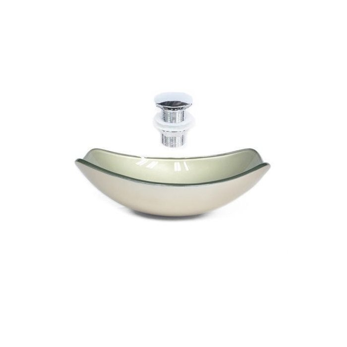Cuba de Vidro Oval Chanfrada 51cm + Valvula Click Champanhe