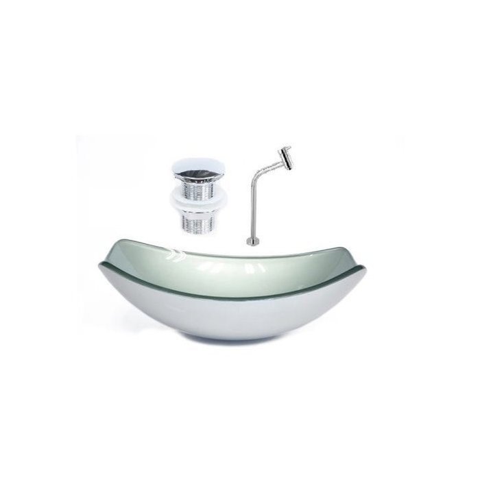 Cuba de Vidro Oval Chanfrada 51cm + Valvula Click + Torneira Metal Prata