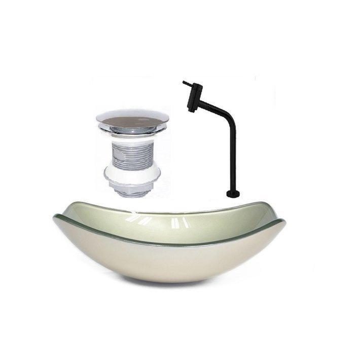 Cuba de Vidro Oval Chanfrada 51cm + Valvula + Torneira Champanhe