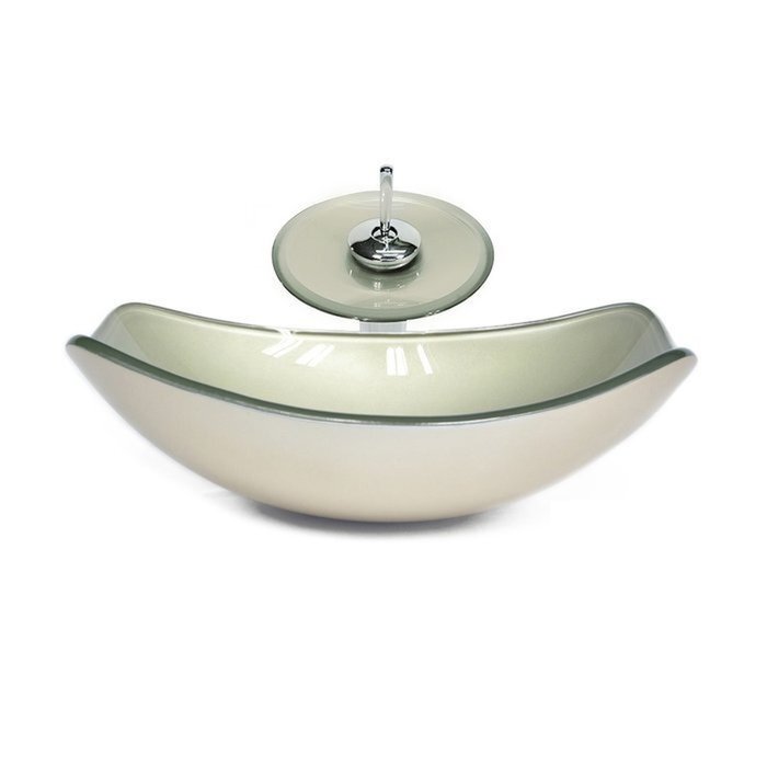 Cuba de Vidro Oval Chanfrada 51cm + Valvula + Torneira Cascata