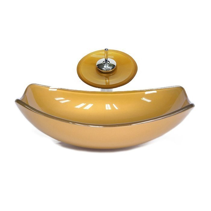 Cuba de Vidro Oval Chanfrada 51cm + Valvula + Torneira Cascata Dourado Real