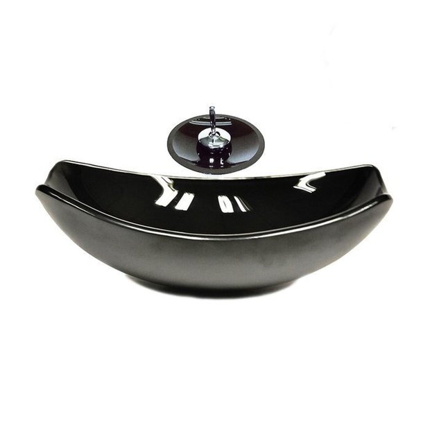 Cuba de Vidro Oval Chanfrada 51cm + Valvula + Torneira Cascata Grafite