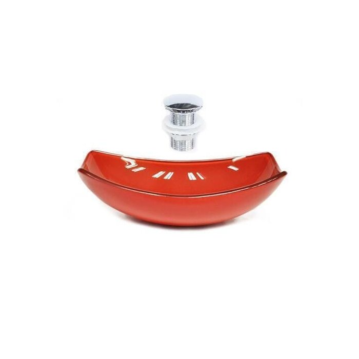 Cuba de vidro oval chanfrada 51cm vermelho ferrari + valvula click
