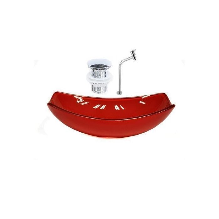 Cuba de vidro oval chanfrada 51cm vermelho c + valvula + torneira