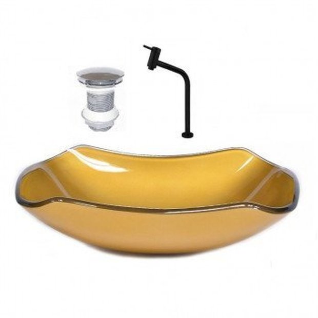 Cuba de Vidro para Banheiro- Oval 47cm Dourado Real