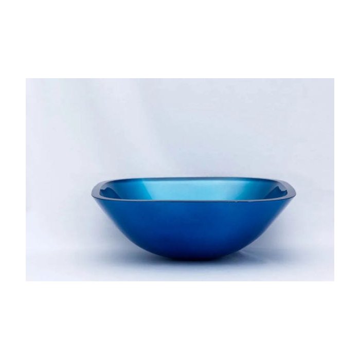 Cuba de Vidro para Banheiros e Lavabos - Quadrada 31cm - Azul - 31x31x13cm