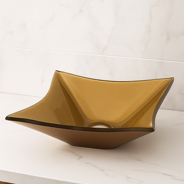 Cuba de Vidro para Banheiros e Lavabos - Quadrada Rt 30 Cm - Bronze