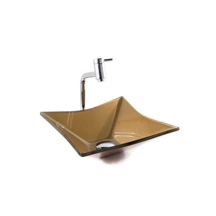 Cuba de Vidro Quadra RT 34 + Torneira Link + Válvula - Marrom amarelado - 34 x 34 x 12 Cm Marrom amarelado