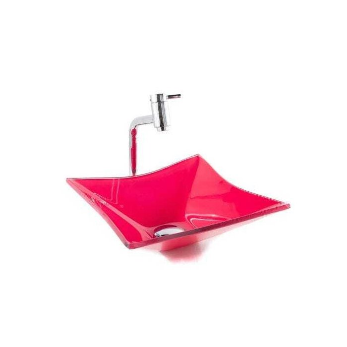 Cuba de Vidro Quadra RT 34 + Torneira Link + Válvula - Rosa - 34 x 34 x 12 Cm