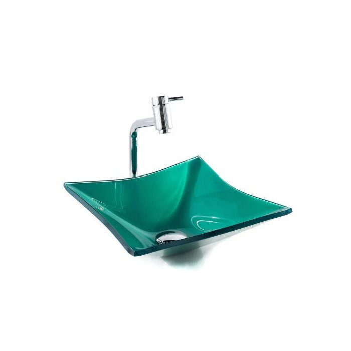 Cuba de Vidro Quadra RT 34 + Torneira Link + Válvula - Verde escuro - 34 x 34 x 12 Cm